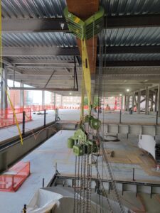Data center construction often involves installing large and heavy equipment like chillers, backup generators, and switchgear in spaces with restrictive clearance. Traditional lifting setups can’t always fit through doorways or maneuver in low-ceiling environments. Without the right rigging equipment, delays and safety risks quickly escalate.